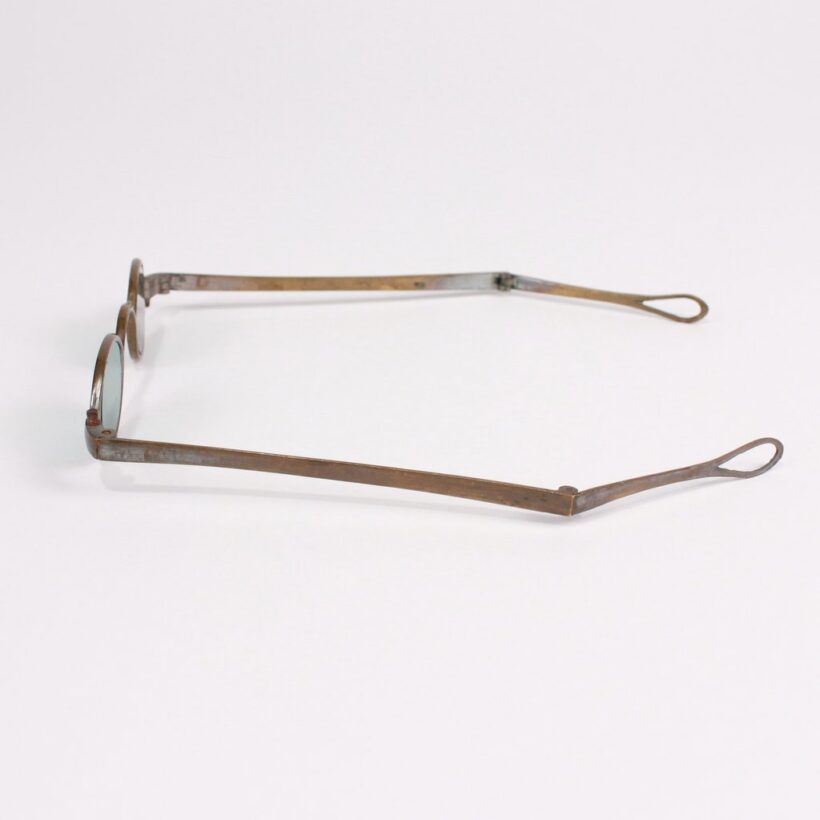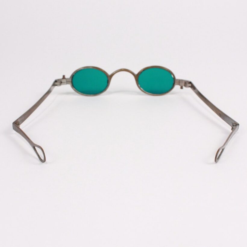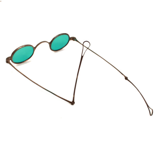 Tinted green eyeglasses / brass and colored glass / c. 1830s