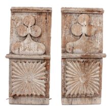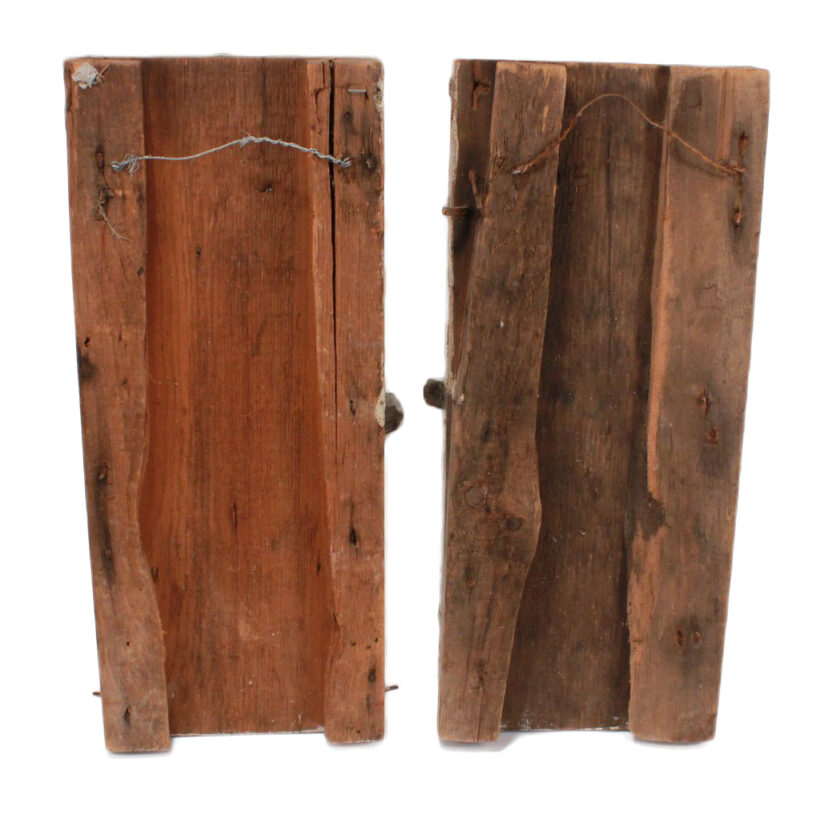 Pair of antique Federal-period architectural elements, c. first quarter nineteenth century. Striking and likely unique in form, these panels with their unusual folk art vernacular design once flanked the front door of a Vermont farmhouse.