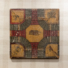 Homemade parcheesi game board / hand-painted wood / c. 1930s