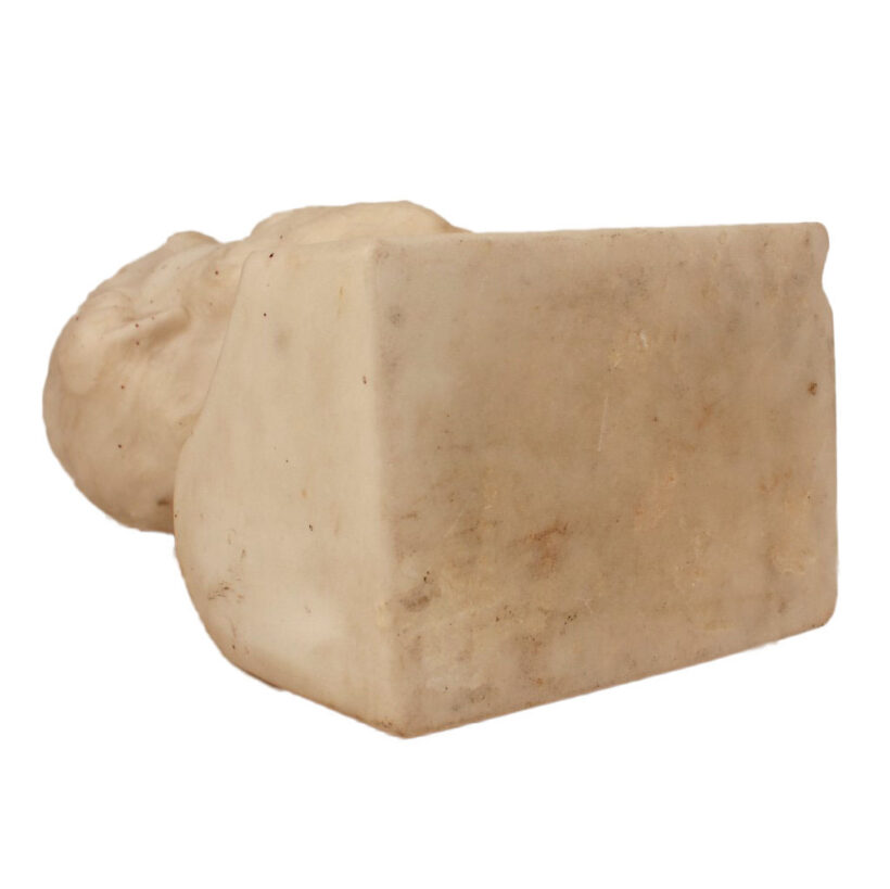 Very good antique condition with one small chip to base and typical discolorations to aged marble. Having probably spent its life in an artist’s studio, the bust is lightly speckled with what appears to be a varnish. If desired, the sculpture could be cleaned, though the bust’s antique surface tells its 150-year story.