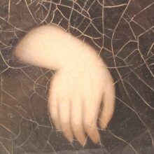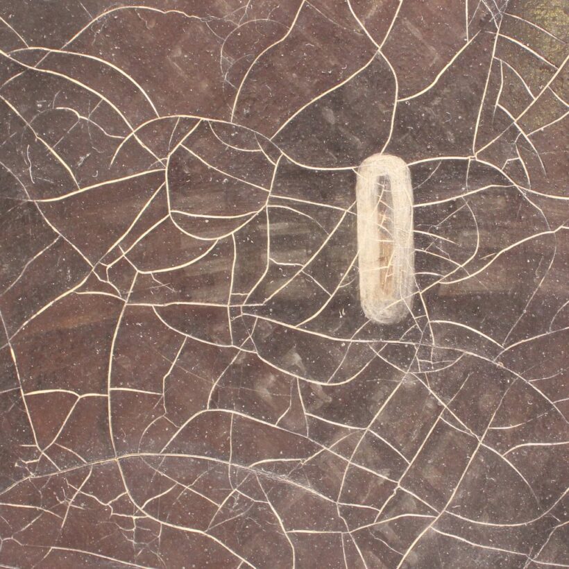 Cracqueleur, tape-bound edges of stretcher, slight stretch irregularities to canvas. Unframed.