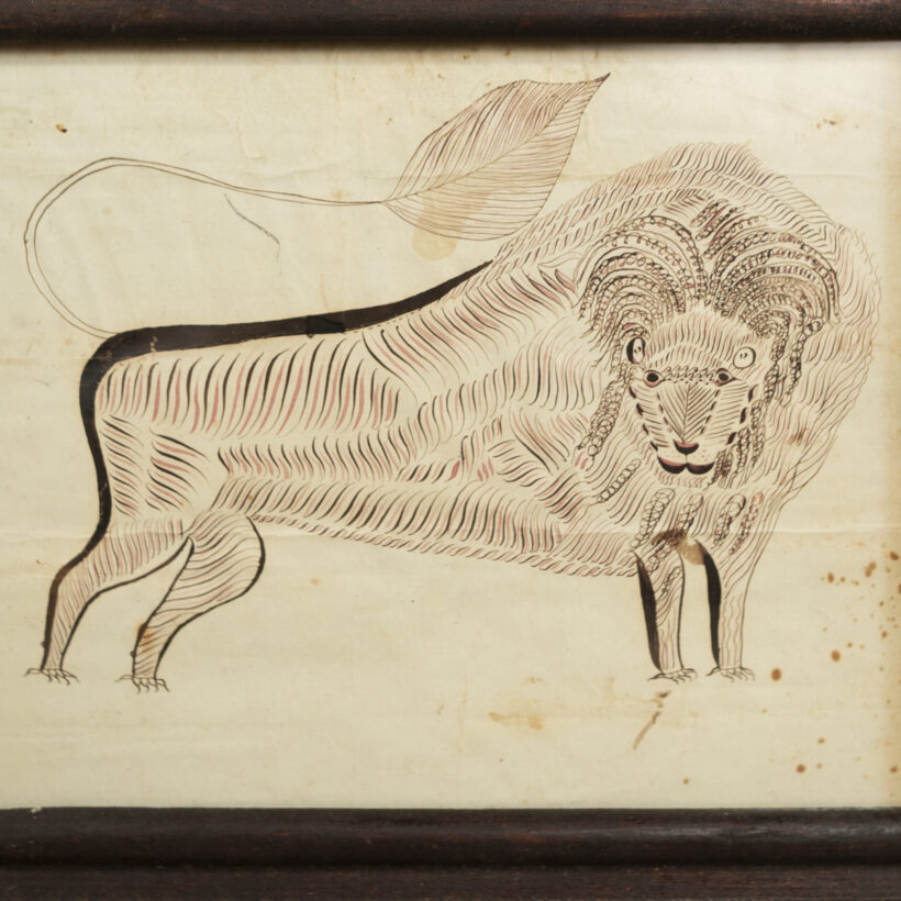 Calligraphy drawing of a lion / pen & ink / Pennsylvania / c. early 19th century