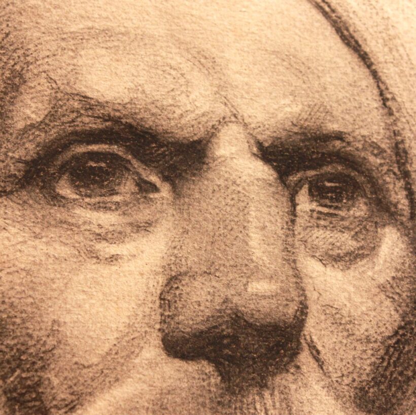 Unsigned, the portrait was clearly drawn by a masterful hand and evokes the gestural styles of fin de siècle artists such as John Singer Sargent and William Merritt Chase. Certain qualities about his face and the unambiguous rendering of his heroic, forceful character, might lead one to see hints of N.C. Wyeth in him as well. Regardless, the work stands apart as an arresting and evocative portrait, and its power seems magnified for its anonymous subject and creator.