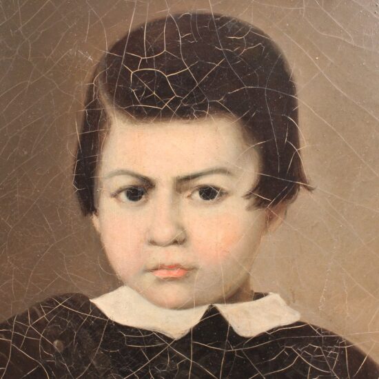 Walking the line between stylized Art Deco and Surrealism, this original devilish painting may have been created as magazine or poster illustration. Unsigned.