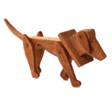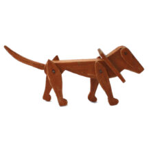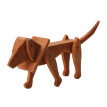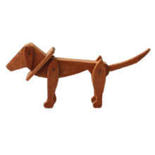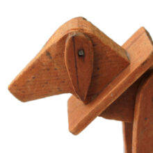 Sized to sit in the palm of your hand, this diminutive dog is at once high style Art Deco design and out of the box folk art. Carved wood. Legs (and even ears) adjustable on pins.
