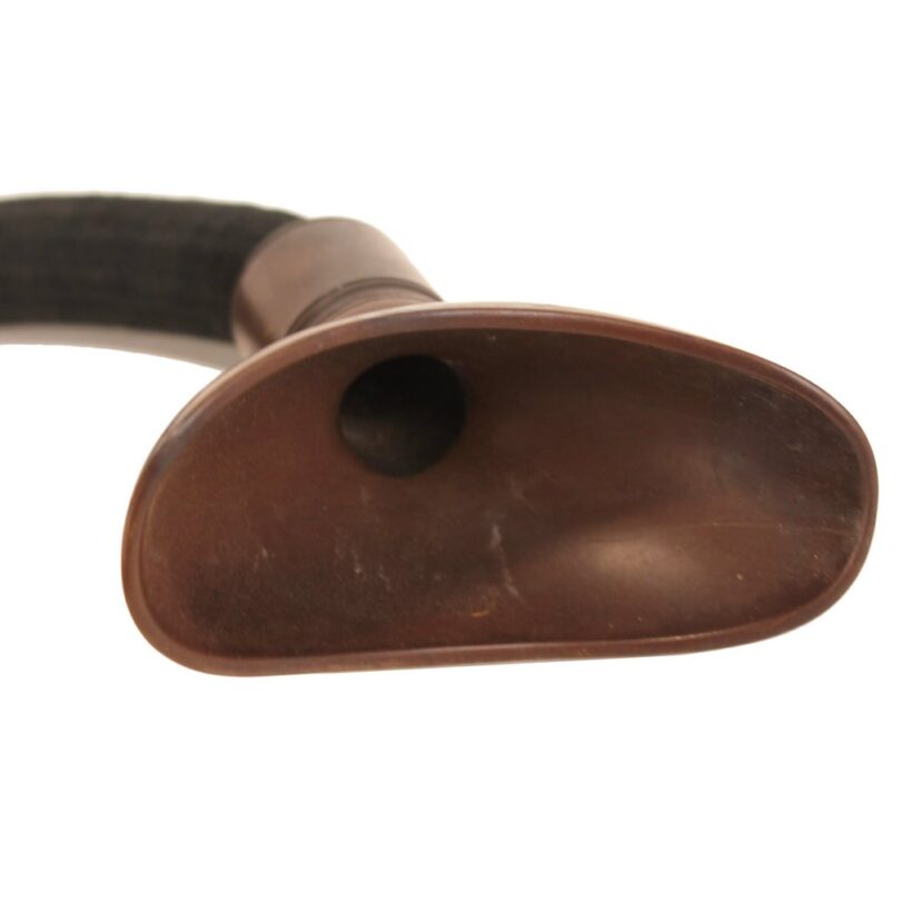With its use of the innovative early plastic gutta percha, this Victorian hearing aid represented the latest in technological advancement. The hearing-impaired would hold the small end to his or her ear while the speaker would use the mouthpiece to communicate through the woven horsehair tube. A strangely beautiful sculptural object and a remarkable survivor in excellent condition.