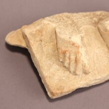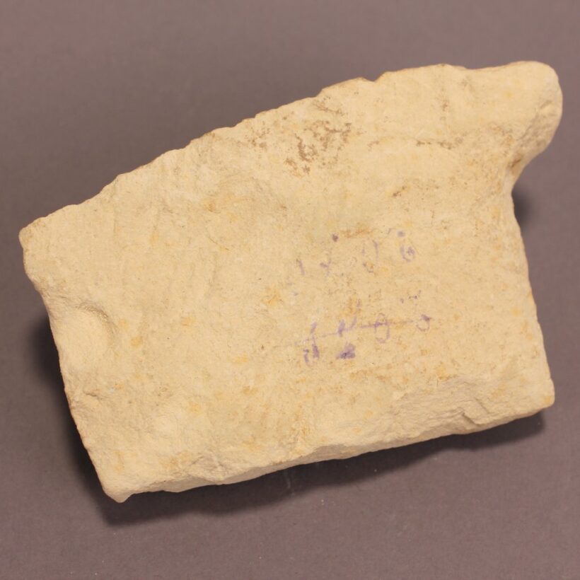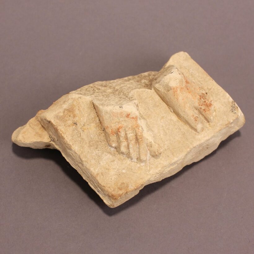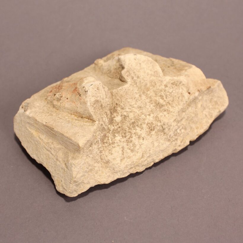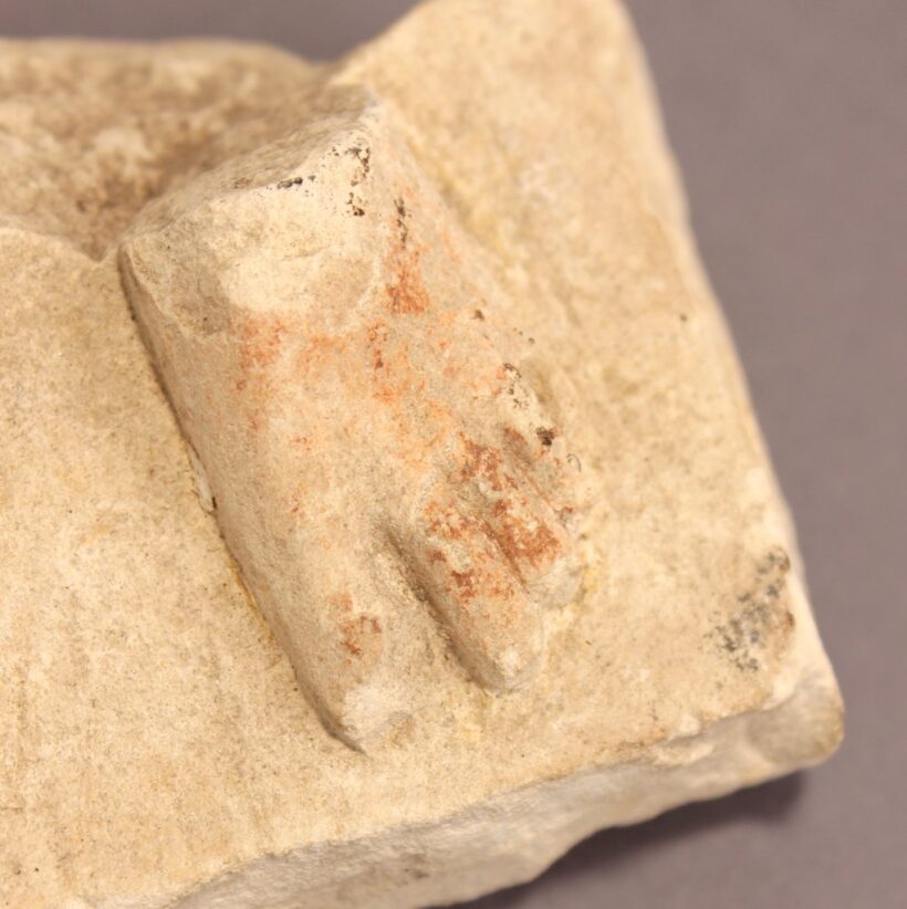 Carved limestone fragment still retaining traces of pigment.