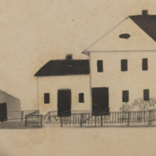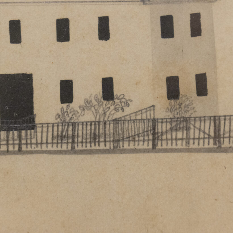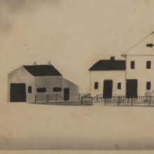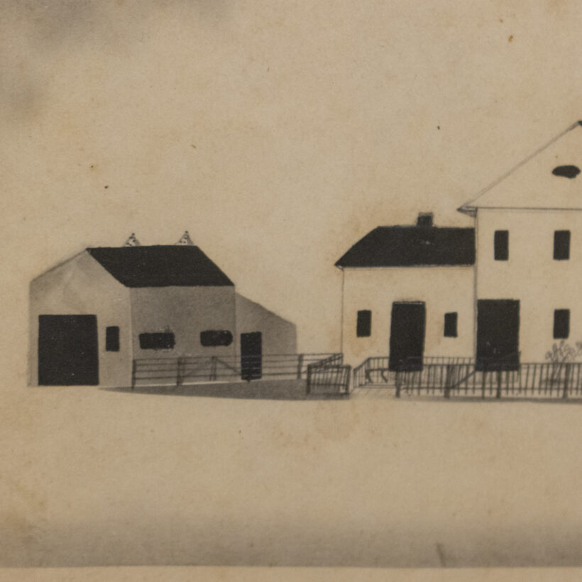 Miniature farmhouse portrait / stencil-painted drawing / c. mid-19th century