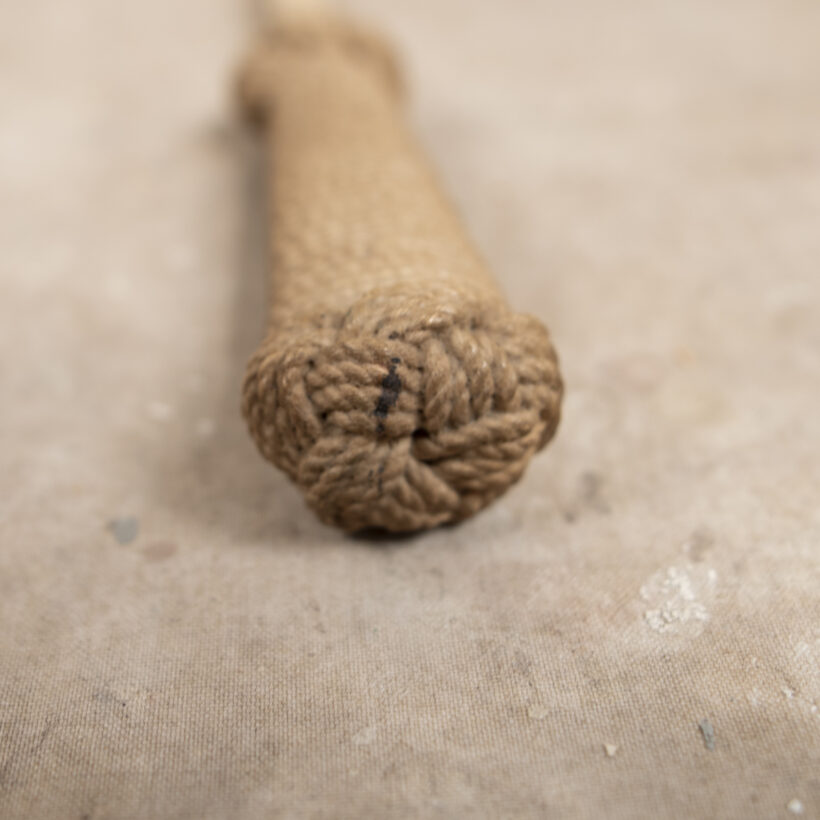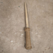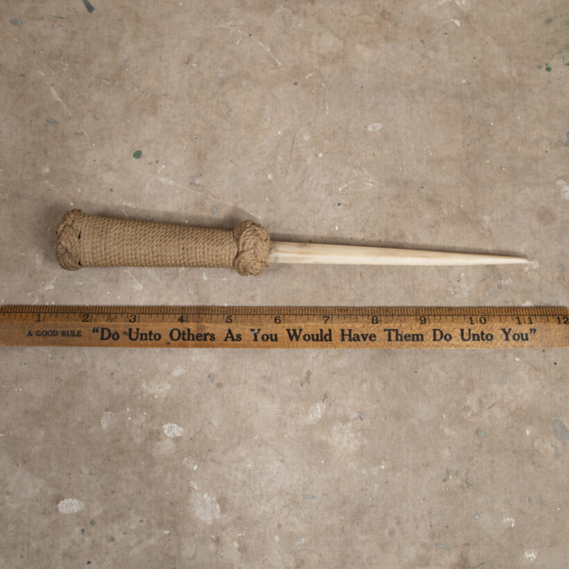 Sailor-made folk art dagger with a fish bone (possibly swordfish) blade and fine knot work handle with braided bolsters. By the extraordinary quality of work, the piece is all likelihood nineteenth century. This sailor’s stiletto could do some serious damage — to your mail, perhaps, as a letter opener.