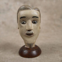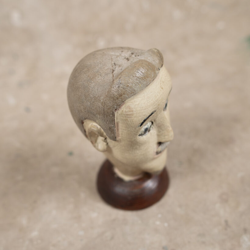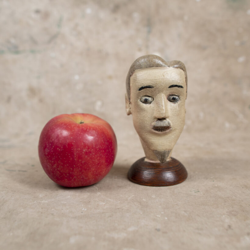 A naive carved and painted bust of a man with mustache and goatee, likely late nineteenth or early twentieth century.