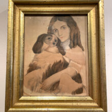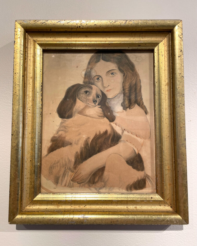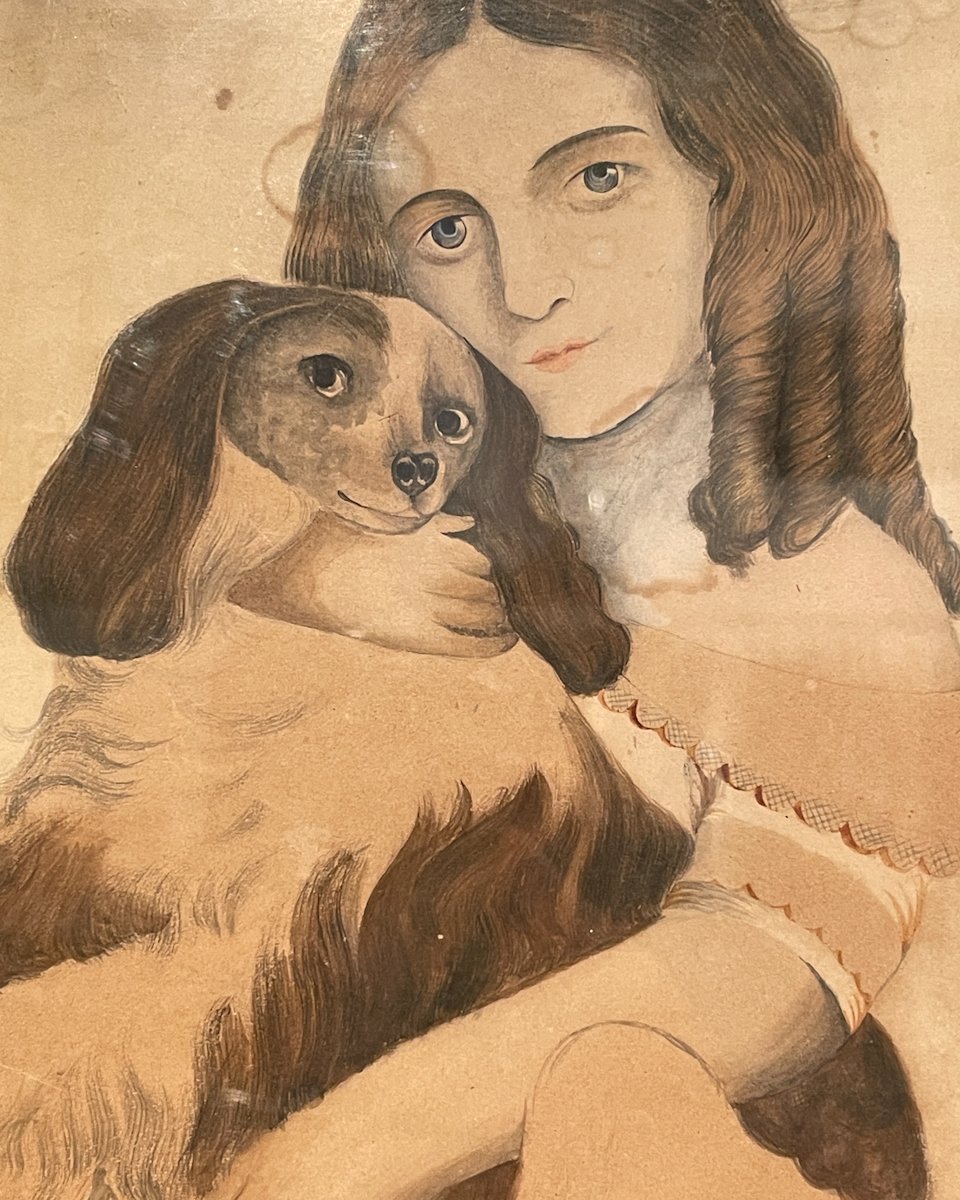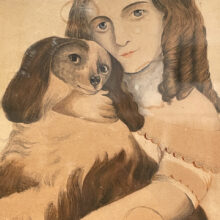 Girl and dog painting / watercolor / ca. mid-19th century