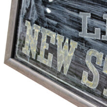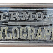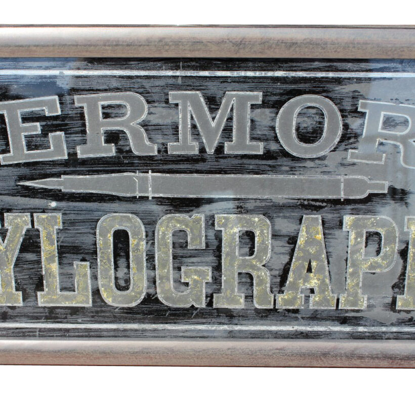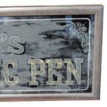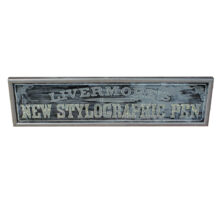 “Livermore’s New Stylographic Pen” reverse-painted glass advertising sign, c. 1880s. I found this antique sign unframed, glass alone, and due to its fragility had it professionally framed. The silver-toned frame giving it the appearance of a period finish.