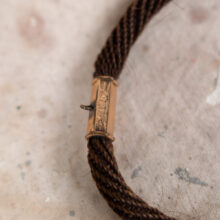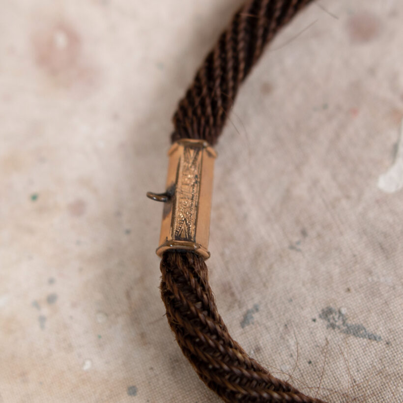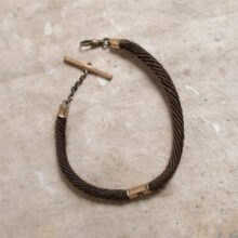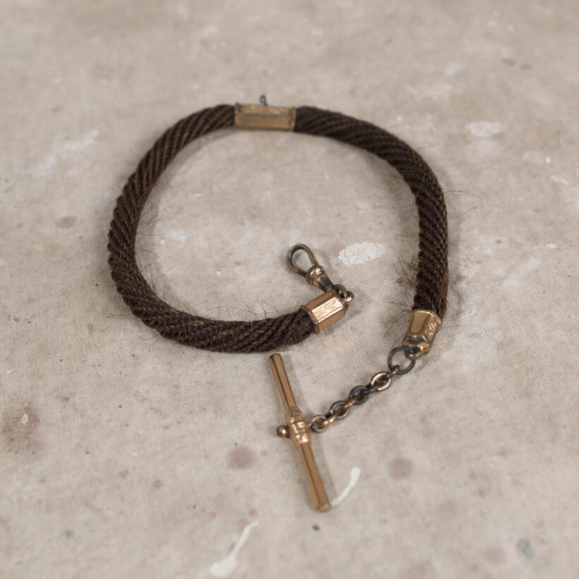 Hairwork watch chain / woven hair & gold-filled clasp / c. third quarter nineteenth century.