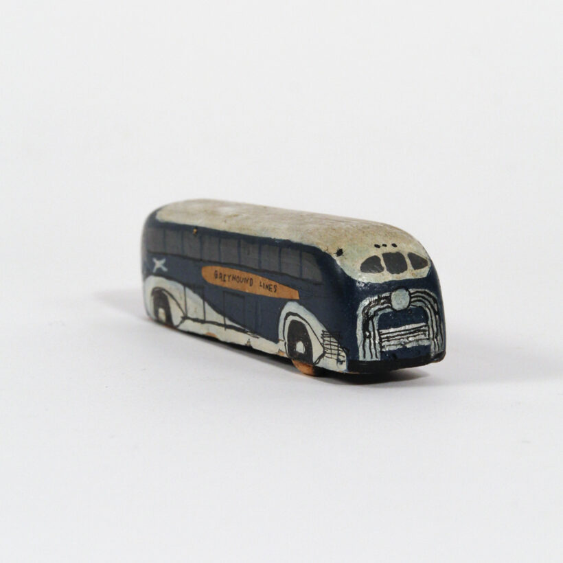 Miniature Greyhound bus / hand-carved & painted wood / c. 1940s