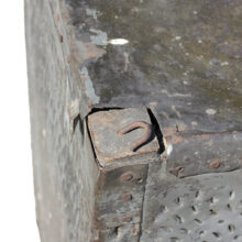Well-worn condition, with several places where the tin is weak or bent, a few rust spots, but altogether the piece has a handsome and timeworn patina.