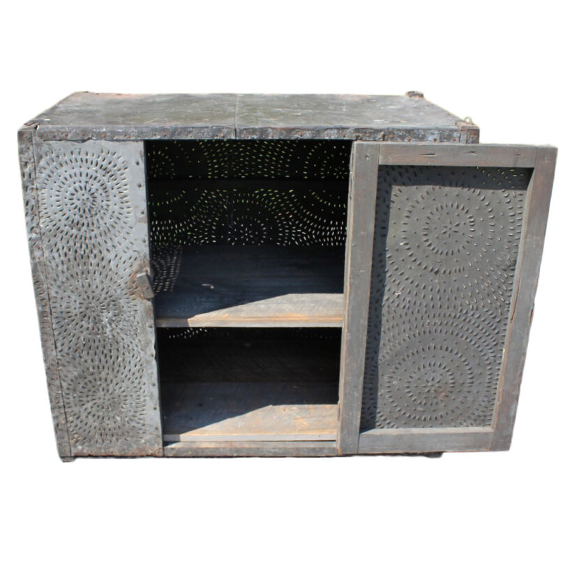 Tin hanging pie safe / pierced tin and wood / c. late 19th century