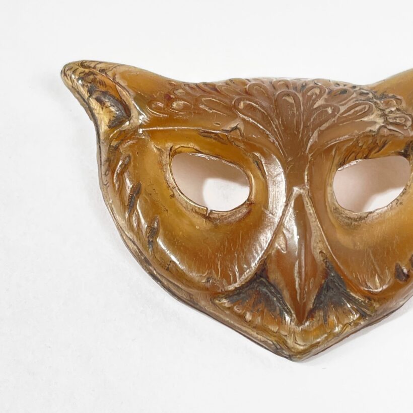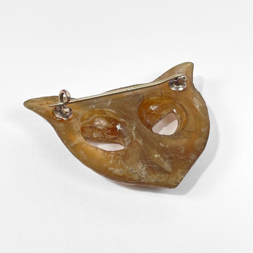 Owl brooch pin of carved horn, c. late nineteenth or early twentieth century. Lovely patina and detail.