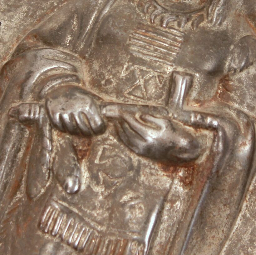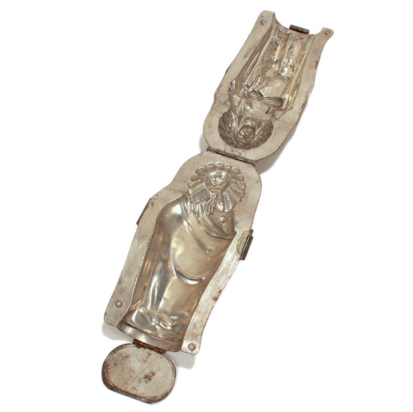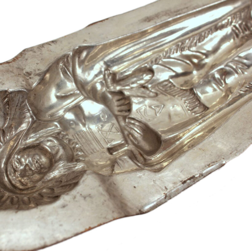 Chocolate mold in the form of an American Indian / nickel plated sheet metal / c. 1890s
