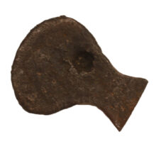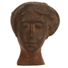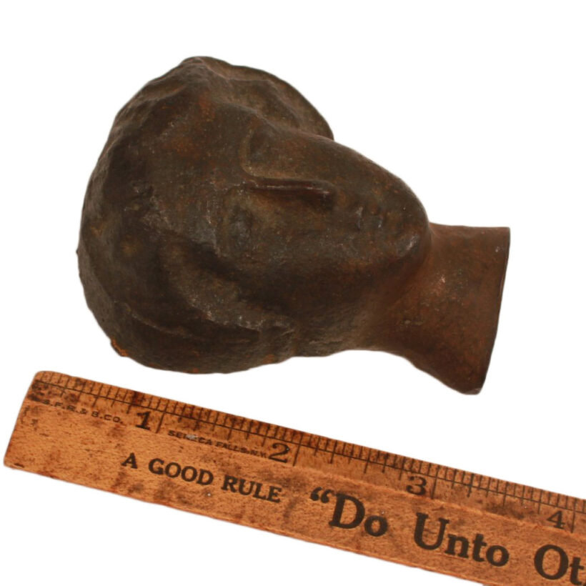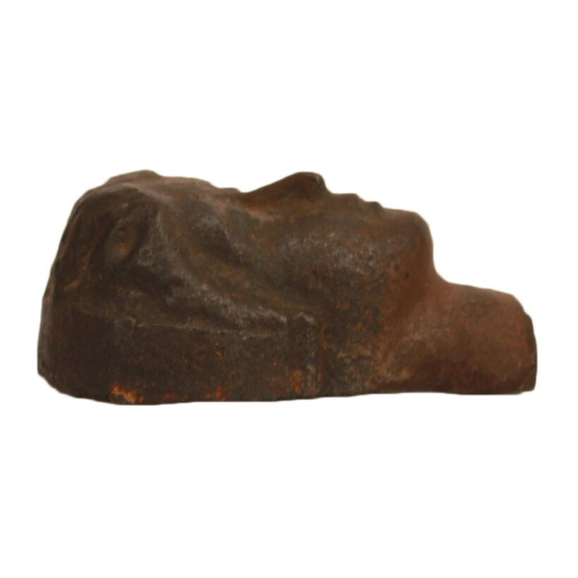 Unusual cast iron bust of a woman, c. early twentieth century. Given the form, the piece is likely a one-of-a-kind folk art piece, perhaps done by a metalworker for a sweetheart in his spare time. The small cast iron portrait lays flat but could be arranged to display upright.