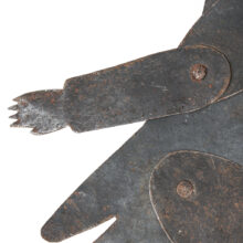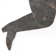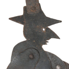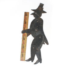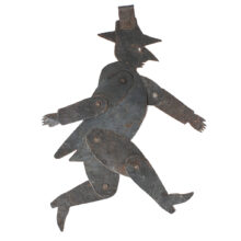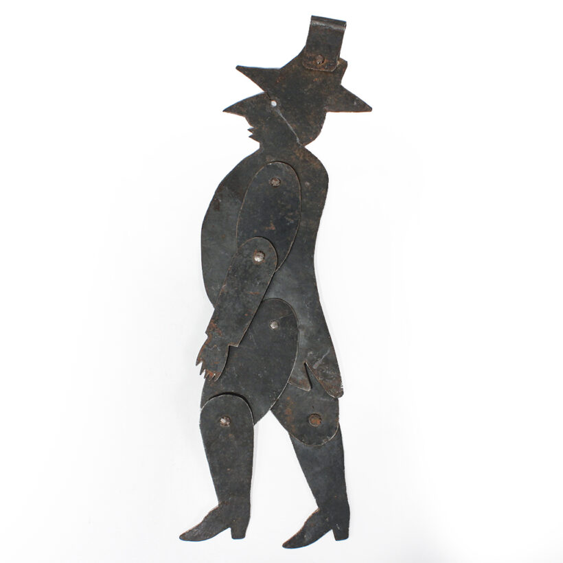 Antique handmade toy dancing man, c. mid-nineteenth century. Originally the figure had a wooden dowel which in hand would bring him to life. Great evocative form and an early example of this type of folk art toy.