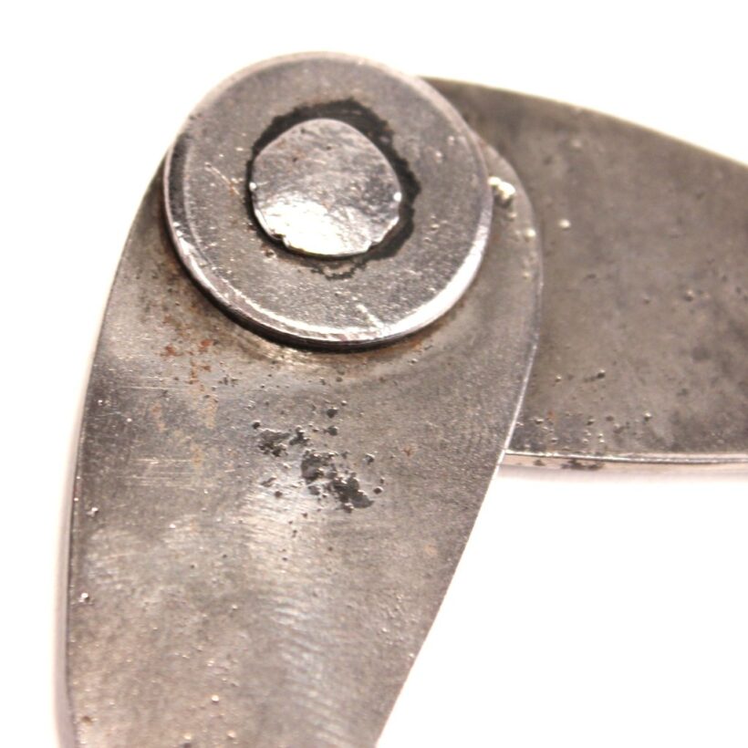 Antique folk art machinist’s caliper in the form of lady legs, c. late 19th century. This design could be used as both an inside and outside caliper, used for instance in measuring the interior diameter of a pipe. Metalworkers often designed and made their own personal calipers for everyday use.