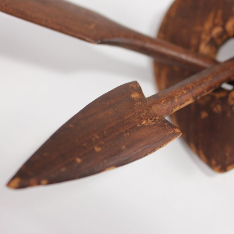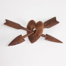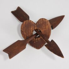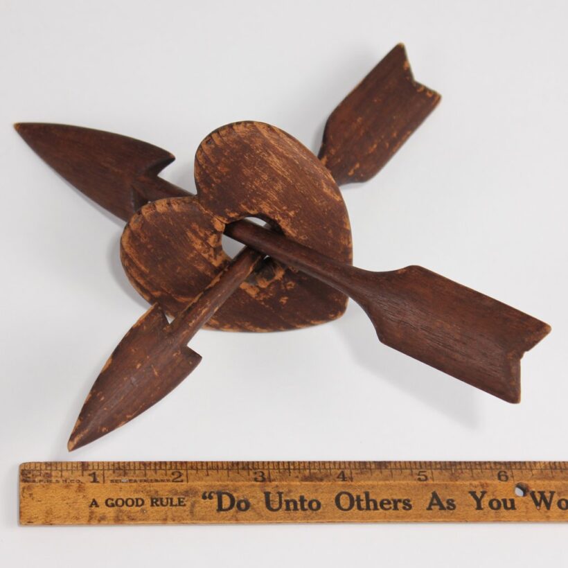 Folk art heart struck through by two arrows / carved pine / c. 1900