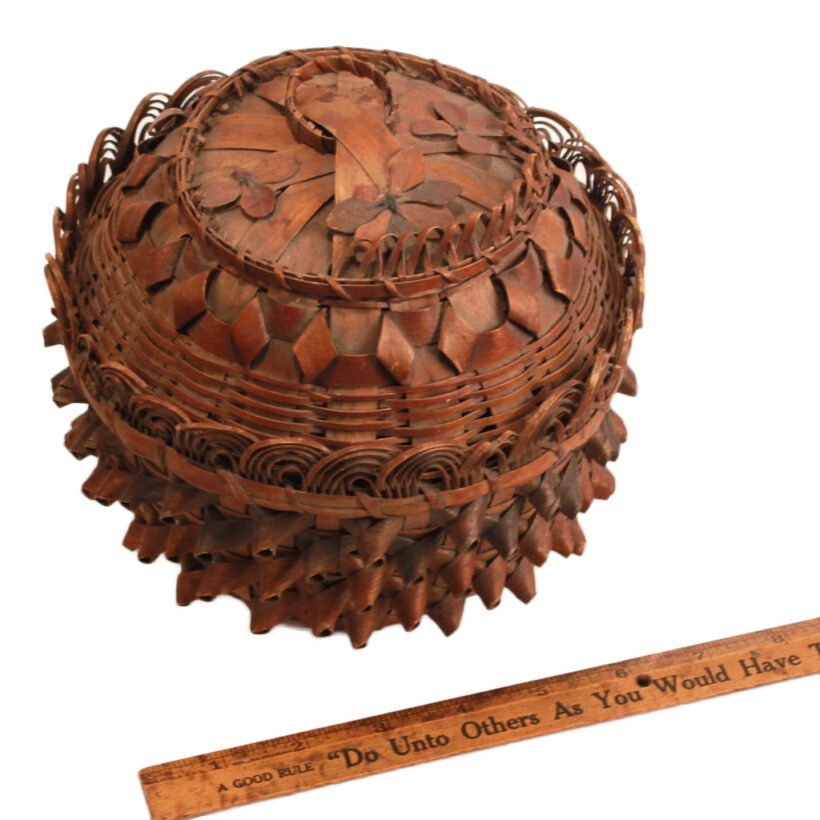 Passamaquoddy hand-woven basket / Maine / dated 1876