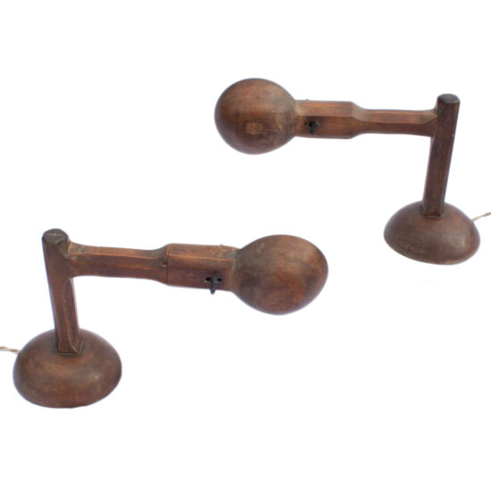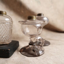 Oil lamps with old repairs / glass, tin, wood / c. mid-19th century