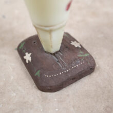 Make-do vase / painted china with replaced wooden base / c. late 19th century
