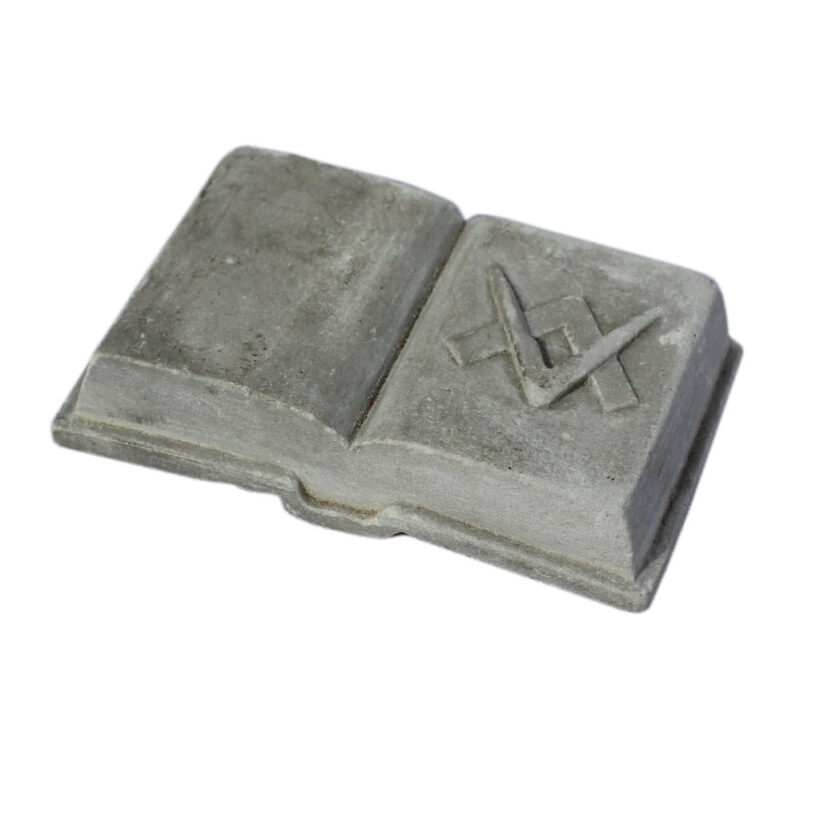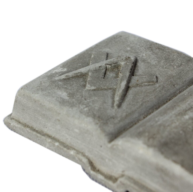 Antique nineteenth century folk art hand-carved stone book emblazoned with the Masonic symbol of the square and compasses. The size of your palm, the impenetrable pages of the stone book with the Masonic emblem carved in relief perhaps symbolized the maker’s commitment to the Masons and keeping its ways secret. Given that the Freemasons were founded by medieval stonemasons, the representation of their order in this American folk art stone carving is more than fitting.
