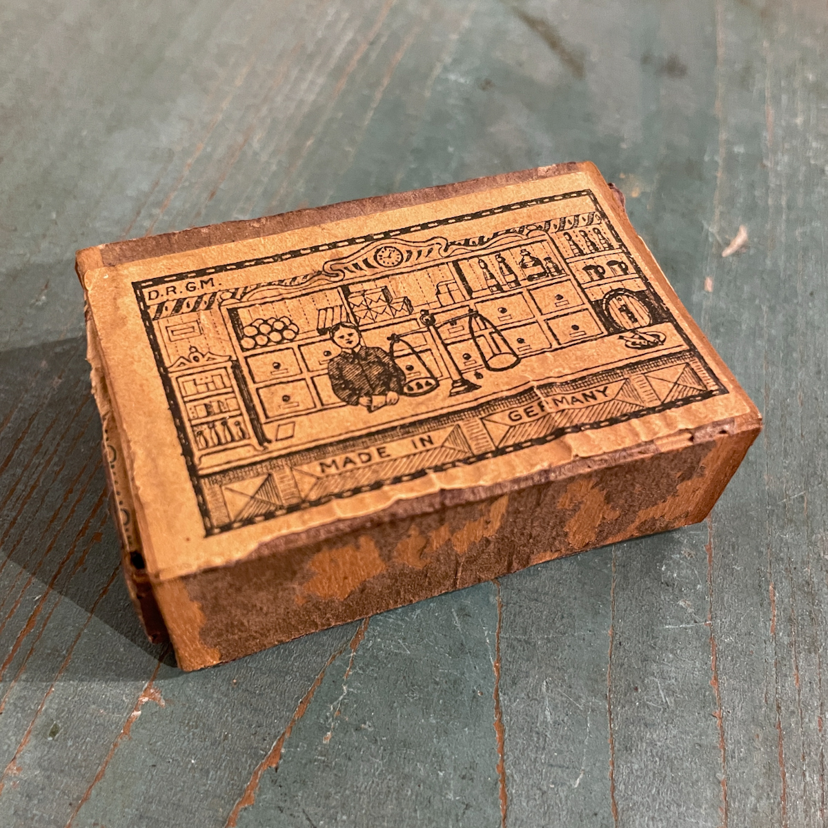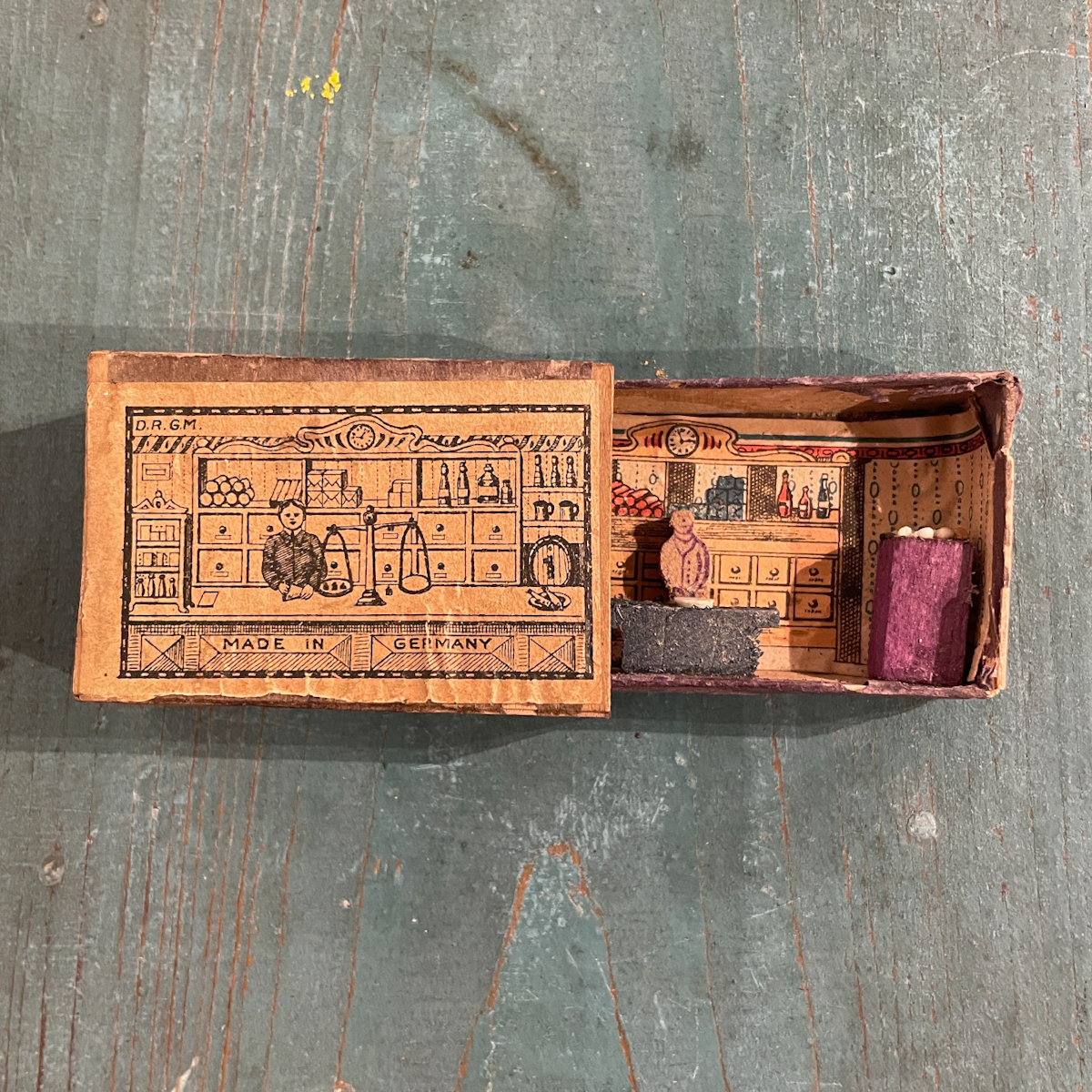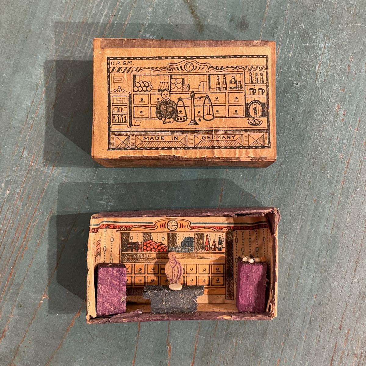 Miniature store housed in a matchbox / wood, cardboard / Germany / ca. 1920s