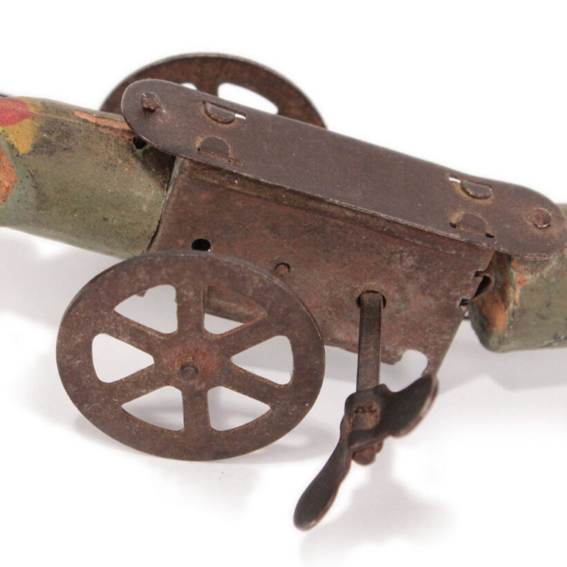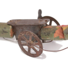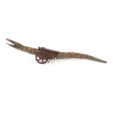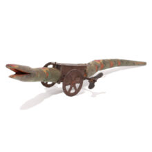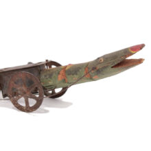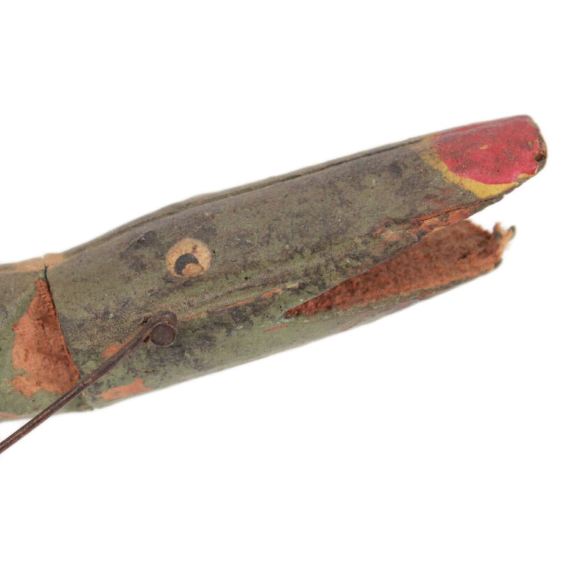 Fantastic antique wind-up mechanical toy snake, c. early turn of the century. It slithers across the floor fast enough to make you jump. The body is wood with joined segments connected with canvas. Great old paint. A rare survivor. See him in action by clicking here.
