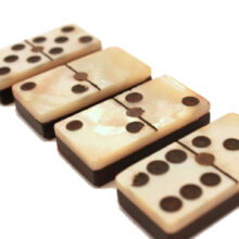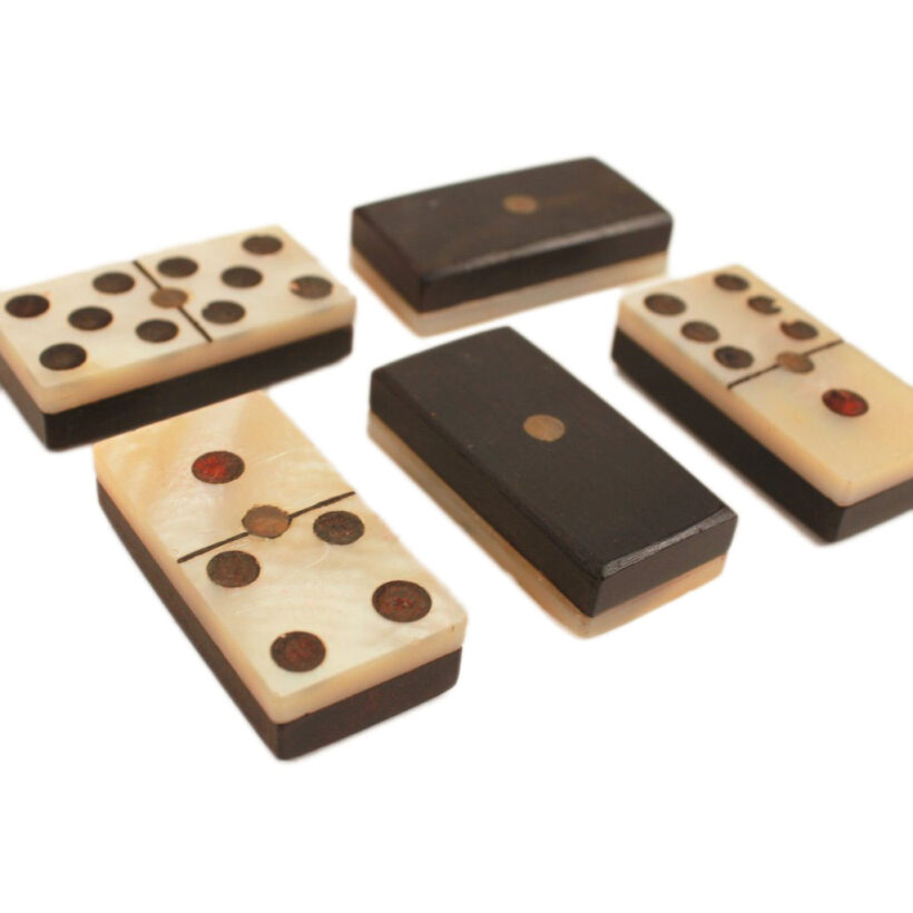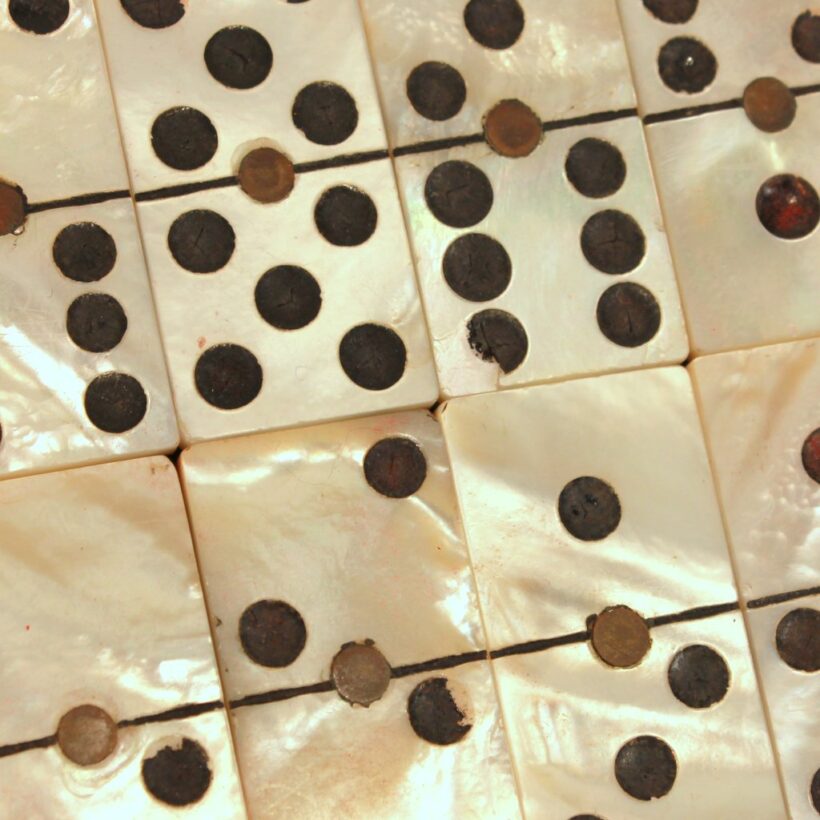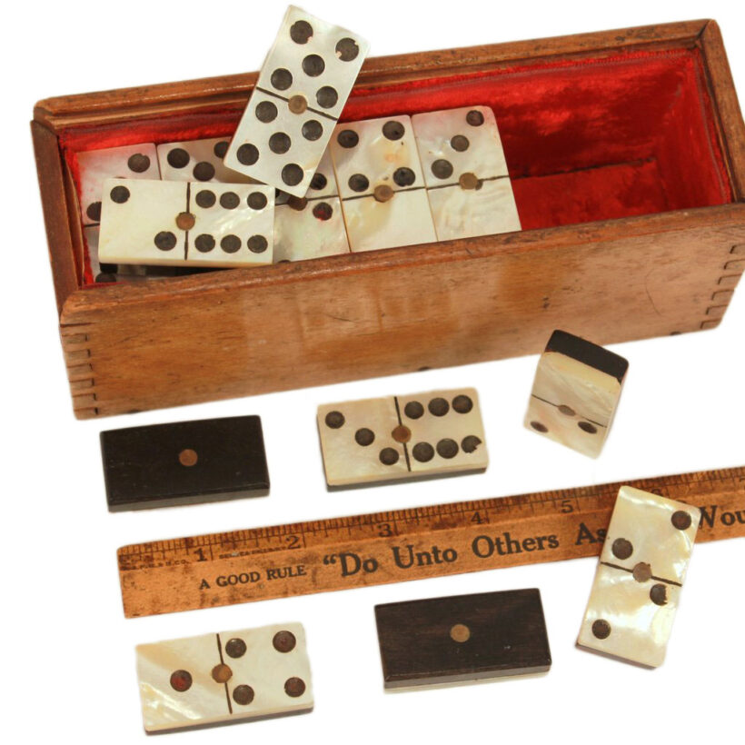 Set of boxed dominos / mother of pearl & ebony / c. late 19th century