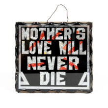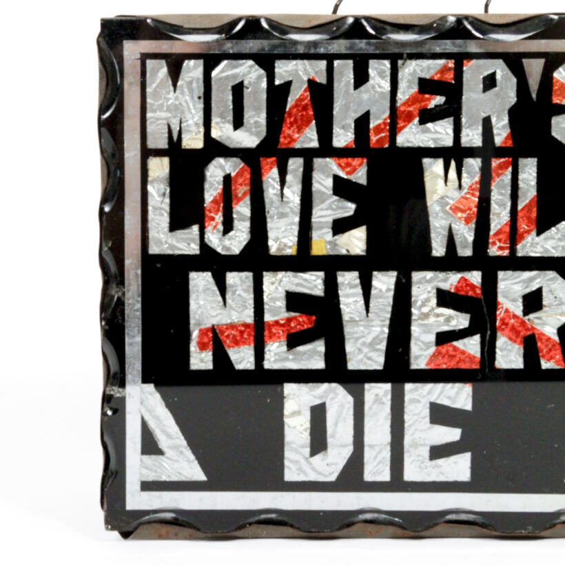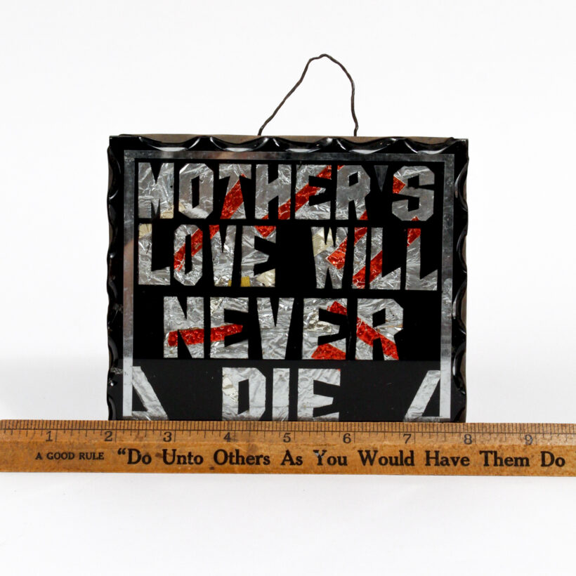 “Mother’s Love Will Never Die” novelty sign / cut glass, polychrome foil, tin / c. early 20th century