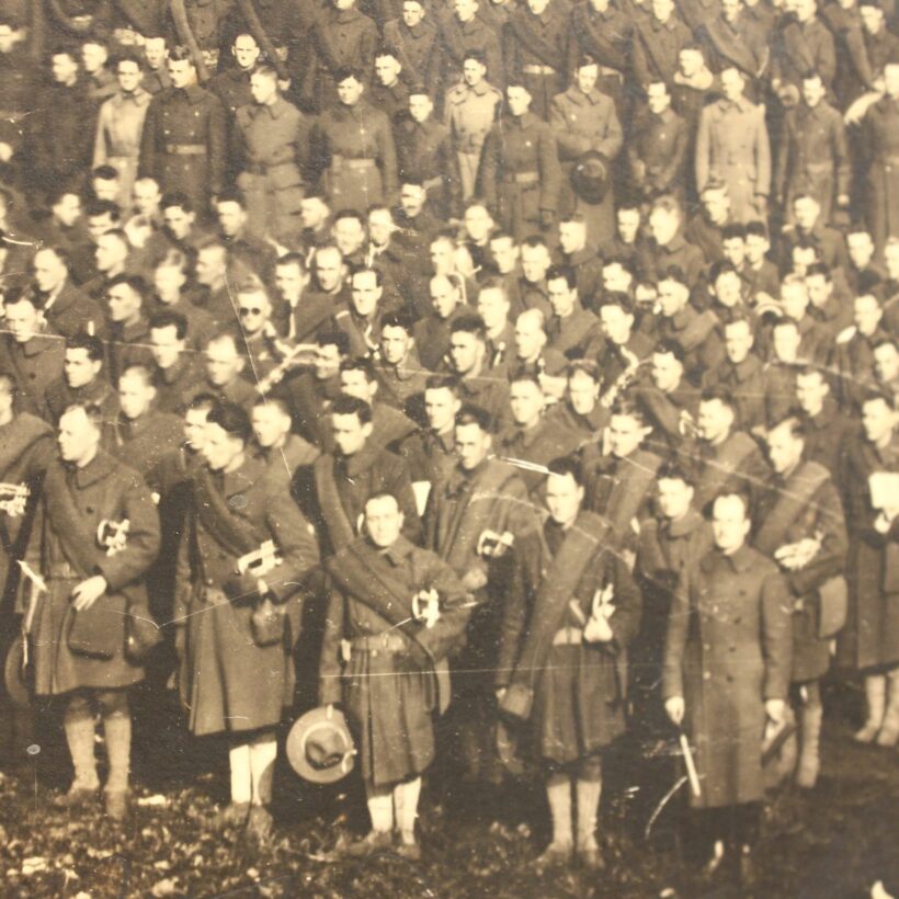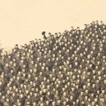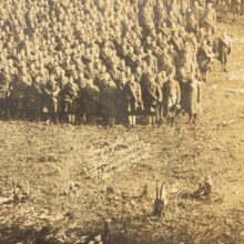 This panoramic photo is extraordinary for its breathtaking scale, yet the print is so clear that a closer view reveals almost every face in recognizable detail. These individuals never saw the horrors of trench warfare, but they had been through hell just the same. They survived and would take off their uniforms soon and go back to normal civilian lives. With no ticker-tape parade for them though, they lined up elbow to elbow on that barren December hillside to mark their own bittersweet victory.