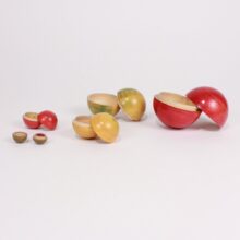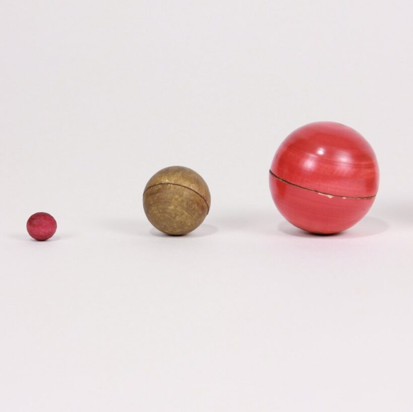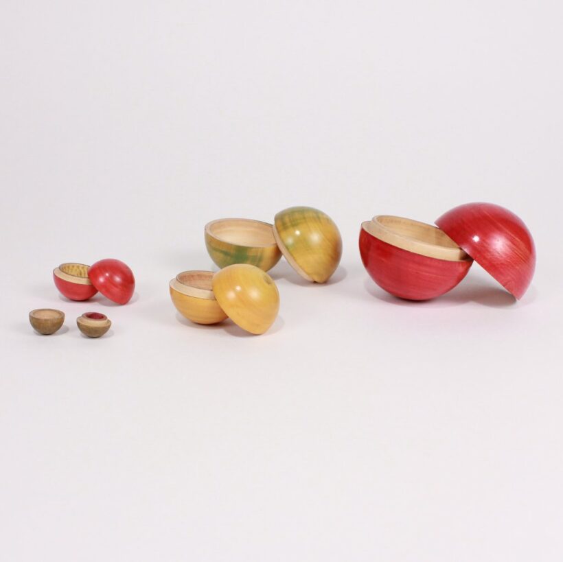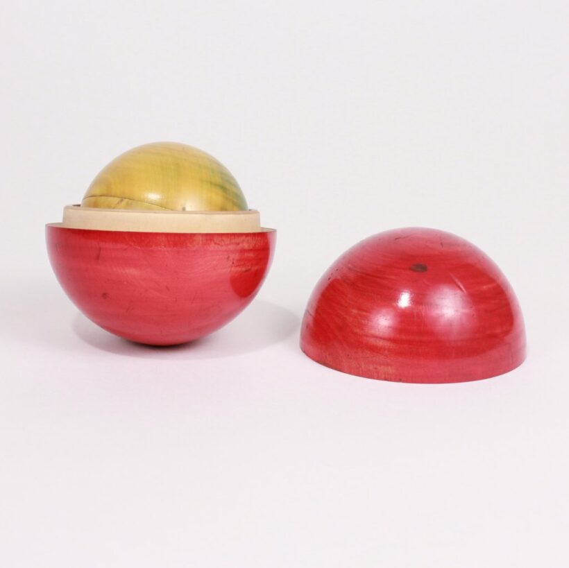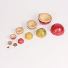 Antique wooden nesting spheres, Russian, c. early twentieth century. Bold colors, sculptural form.
