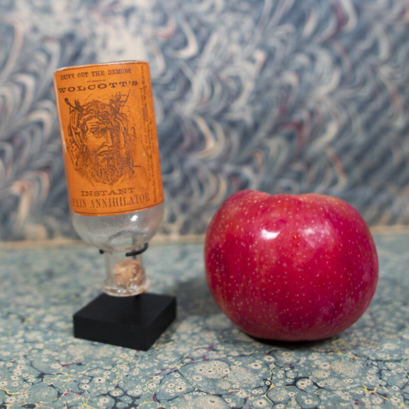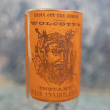 Although Wolcott’s demon-tortured man has become an iconic brand in nineteenth century advertising, I was unable to find a single bottle with an intact label.