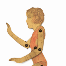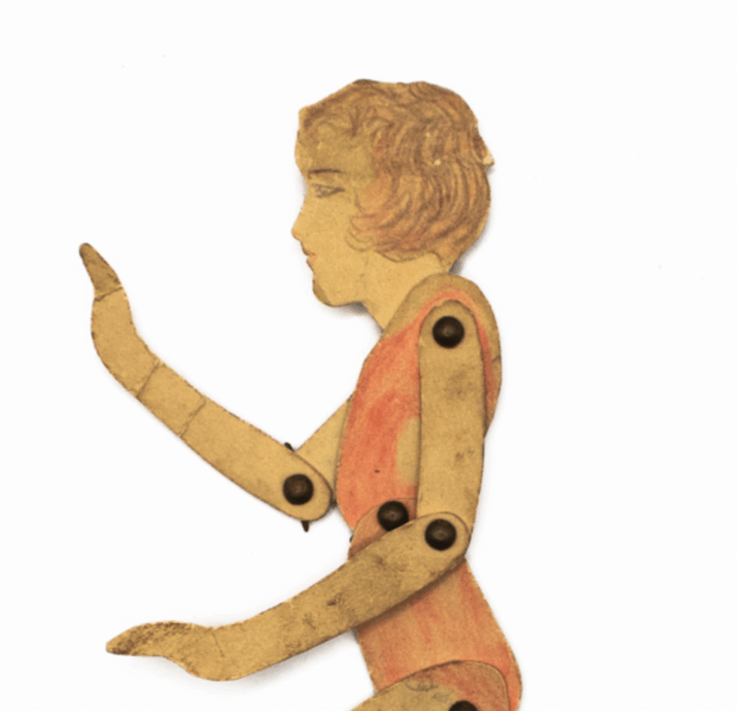 Folk art jointed mannequin doll / hand-drawn cut paper / c. 1920s