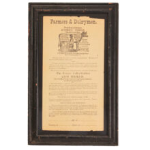 Once the cow’s teat was placed in the rubber-cushioned opening at the end of the device, the milker would grip the two handholds the other end and alternately apply and alleviate pressure to milk the animal. Given the fragile invention required the same basic manual actions and hand position as milking a cow by hand, it does not seem likely it saved the dairy farmer much effort nor provided “Cleanliness and Efficiency” on a working farm for long.