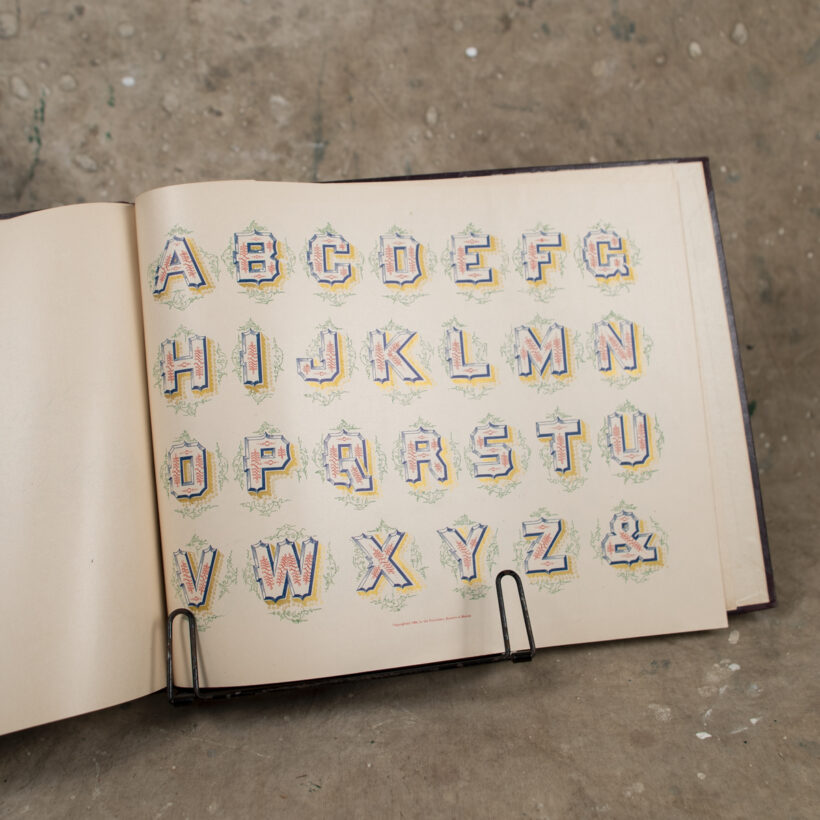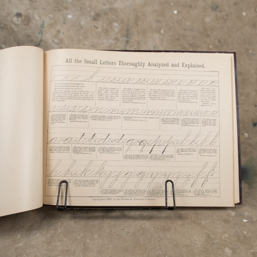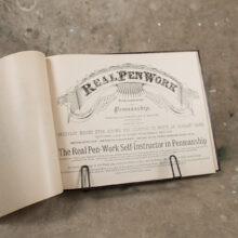 “Real Pen Work Self Instructor in Penmanship” / hardcover, approx. 50 pages with lithograph illustrations / published 1884