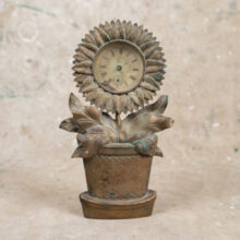 Shelf clock in the form of a flower pot / brass / c. late 19th century