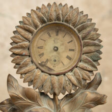 Victorian miniature floral clock that knows no season. Antique brass patina in full bloom.
