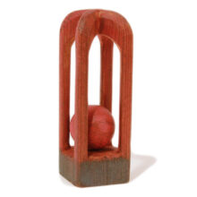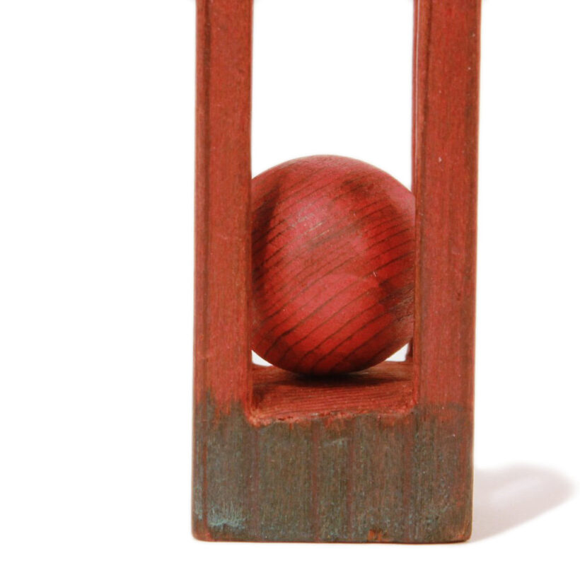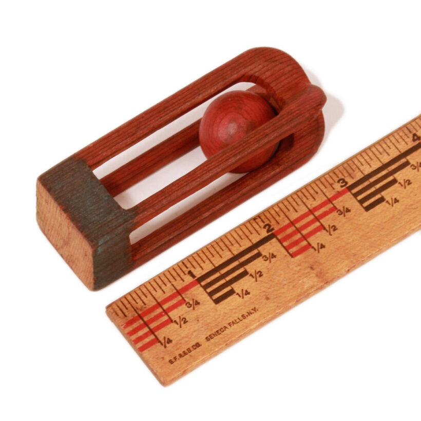 A simple and elegant folk art whimsy carving of a caged ball, carved from the same piece of wood. Great old paint.