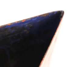 Rare antique porcelain “This Table Reserved for Ladies” sign, c. 1890s. North Shore Massachusetts dance hall provenance. The vintage sign is salmon and cream colored porcelain and is made of sheet iron in a tent form for tabletop display, the interior of which is coated in navy blue porcelain. The style of the lettering along with the thickness of the porcelain and substantial weight of the sign indicate an earlier manufacture, probably late 19th or turn of the 20th century.