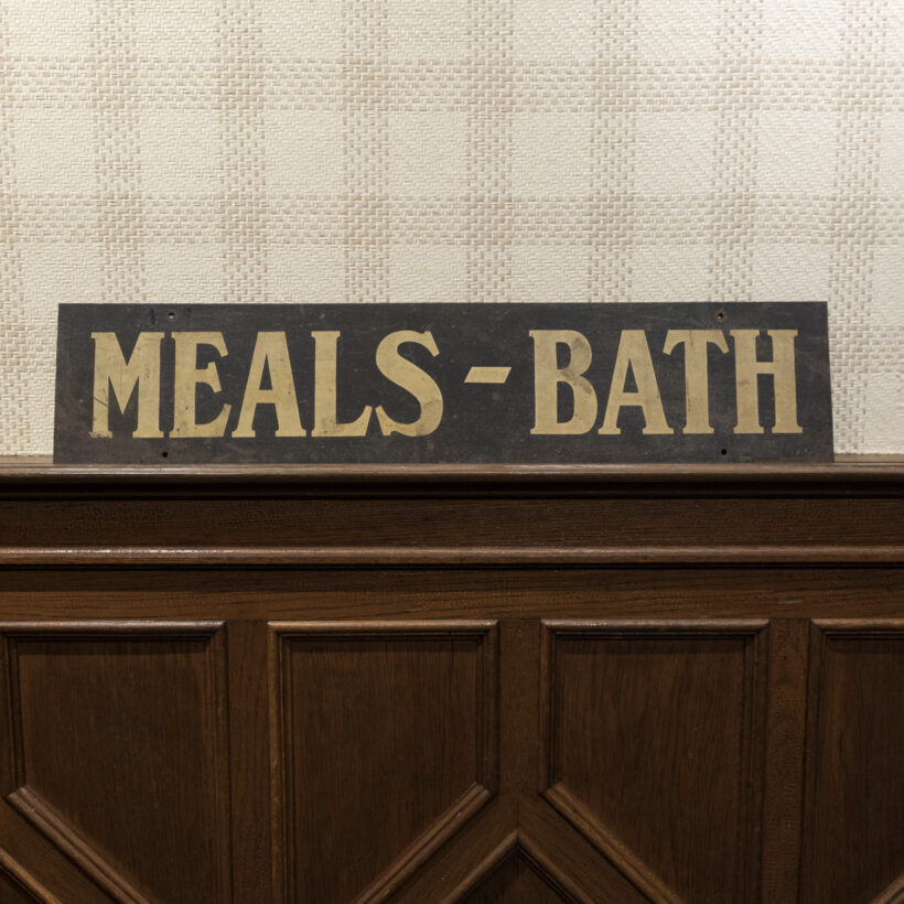 “Meals-Bath” rooming house sign / painted sheet iron / c. 1920s