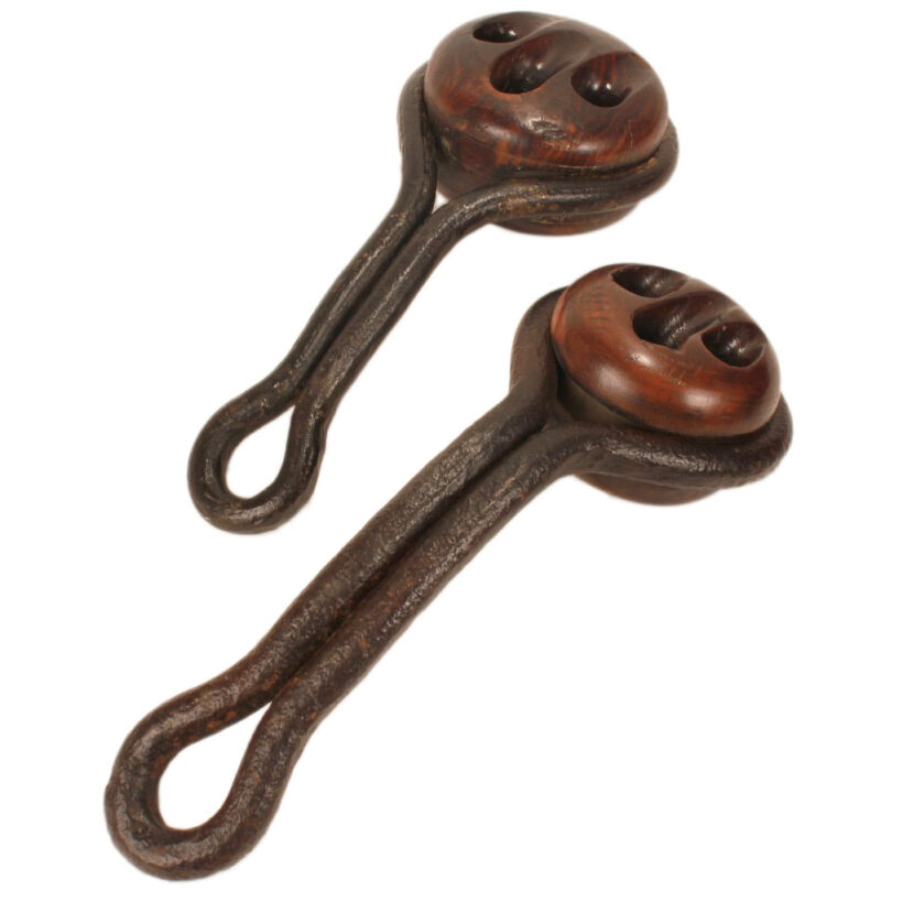 Deadeyes from a sailing ship’s rigging / lignum vitae & wrought iron / c. 1860s