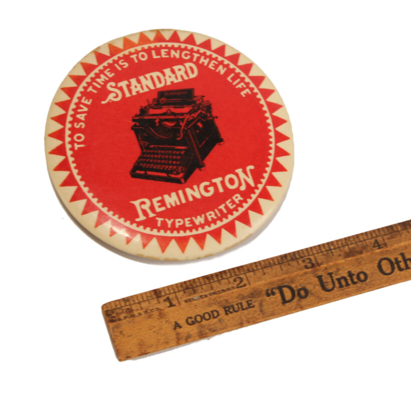 Remington typewriter advertising mirror / celluloid, tin, glass / c. 1910s