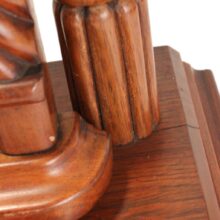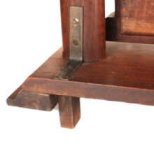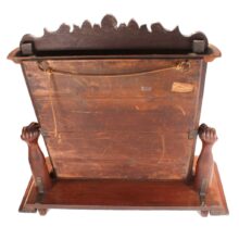 Excellent antique condition. A few very minor discolorations on the finished surface, and slight stress evidence on the back of the mirror where the pins connect to the hand supports, but solid and sturdy.