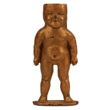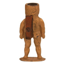 Antique pencil sharpener in the form of a child, gold-painted, c. 1910s. Made in Germany.