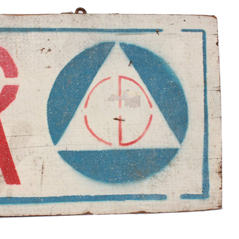 Civil Defense shelter sign / painted wood / c. 1940s